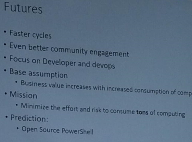 In the last year or so Microsoft has finally come to accept that the technology world is a heterogeneous place and Microsoft technology will grow and adapt to that reality. You can expect PowerShell to be at the forefront of that whether it be Azure or on premises DSC. In the wider heterogeneous technology world systems administration is synonymous with automation and scripting. What Jeffery Snover himself called Windows “Click Next” admins are limiting themselves and their organizations in very profound ways. The days of needing Windows specific admins for Windows servers and Linux specific admins for Linux servers are coming to an end. Do you want to be master of your environments or do you want someone else to be master of your environment? For PowerShell the future is now, but there is still plenty of future in front of us. That is very exciting.